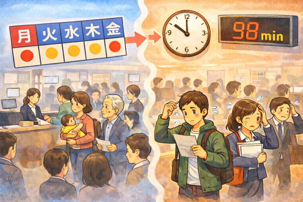 役所の混雑は、次の3つで大きく変わります。