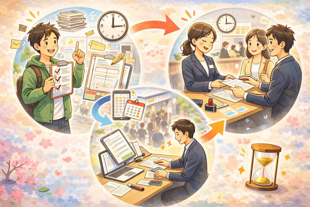 この3つを意識するだけで、手続きにかかる時間を短くできる可能性があります。