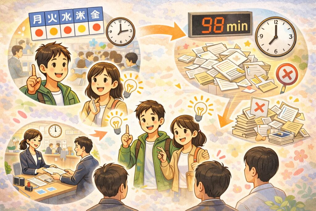役所が混雑しやすい曜日や時間帯については、こちらの記事で詳しく解説しています。