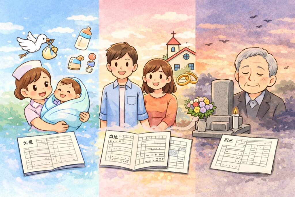 「出生から死亡まで」とは具体的に何を集める?